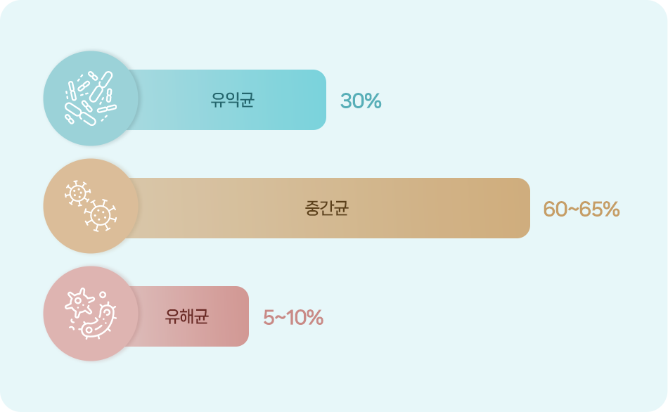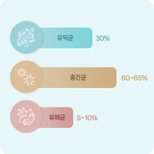 유익균, 중간균, 유해균으로 나눌 수 있습니다.